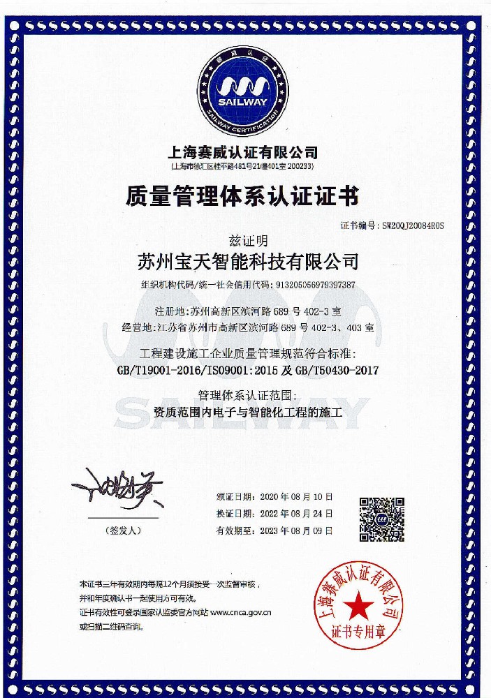 • 質量管理體系認證證書