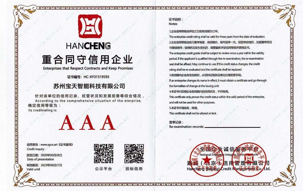 • AAA 級重合同守信用企業